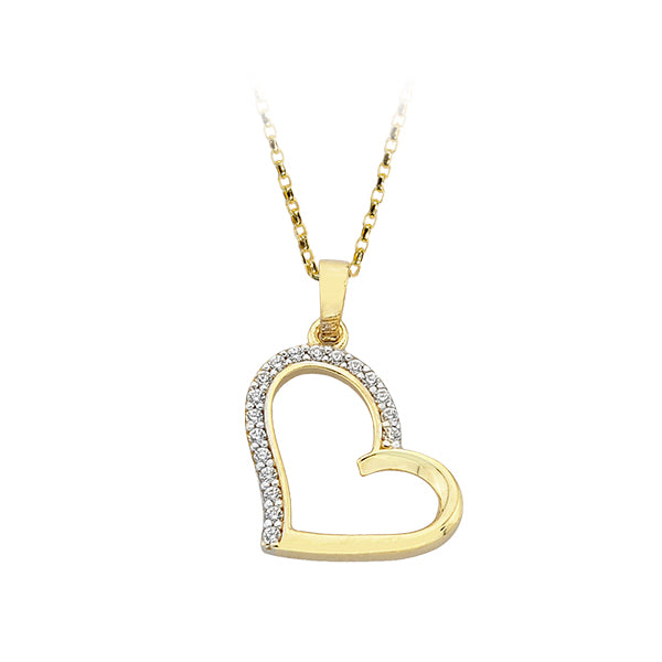 Délicat pendentif en or jaune en forme de cœur. Le côté gauche du cœur est muni de cubiques.